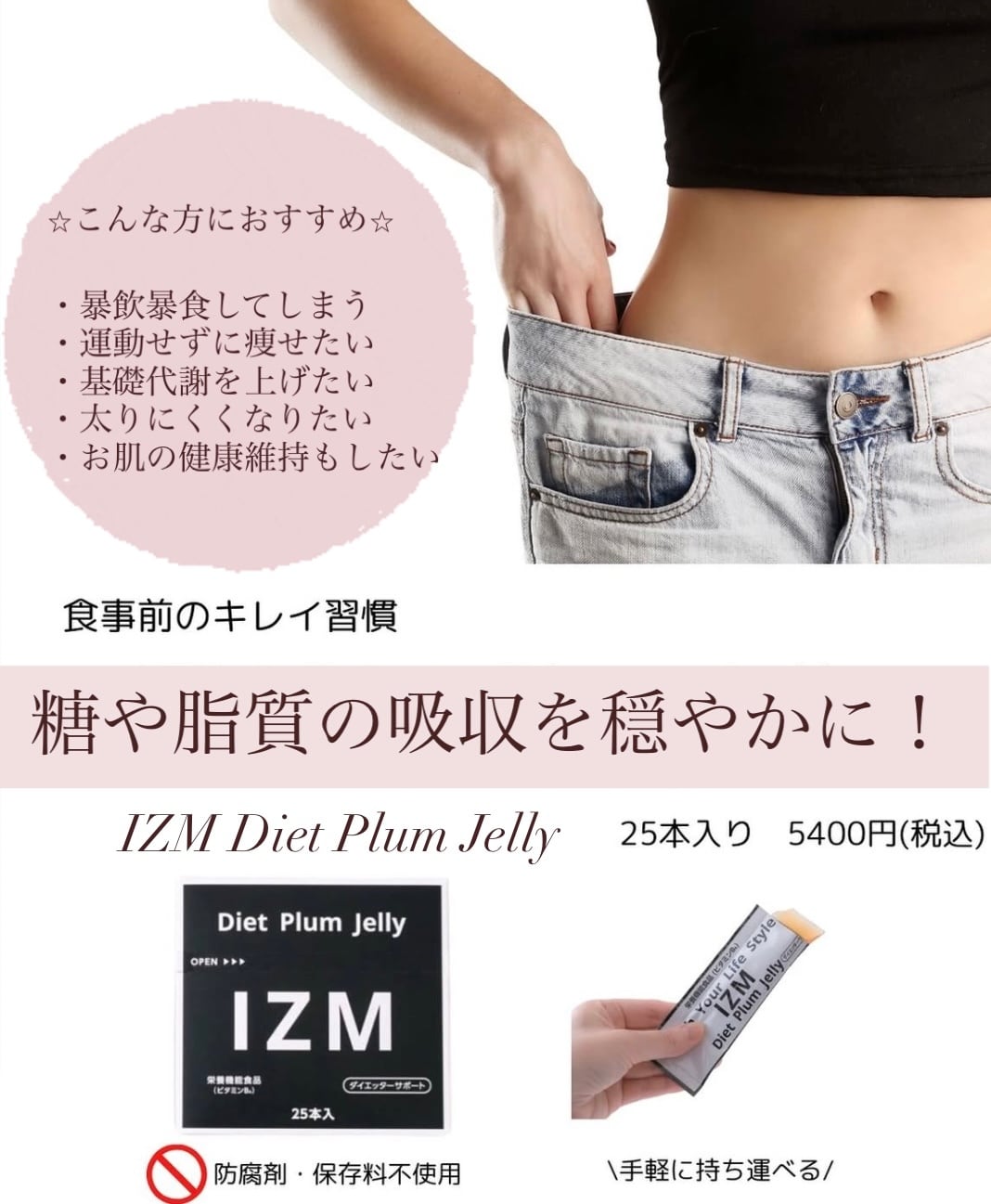 IZM DIET PLUM JELLY(イズム ダイエット プラムゼリー)は、ダイエッターにうれしい身体づくりをサポートするプラム(梅)味のカット系ゼリーです。